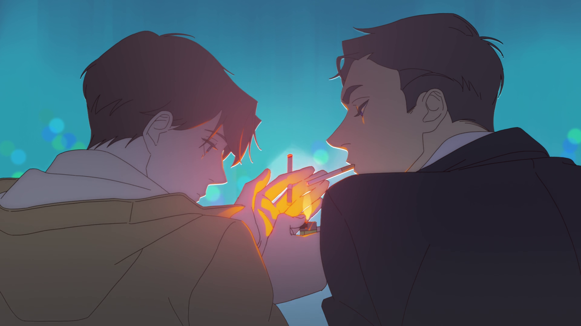 Myeong décide de s'éloigner des conversations animées, et Seon-ho le suit dehors.
